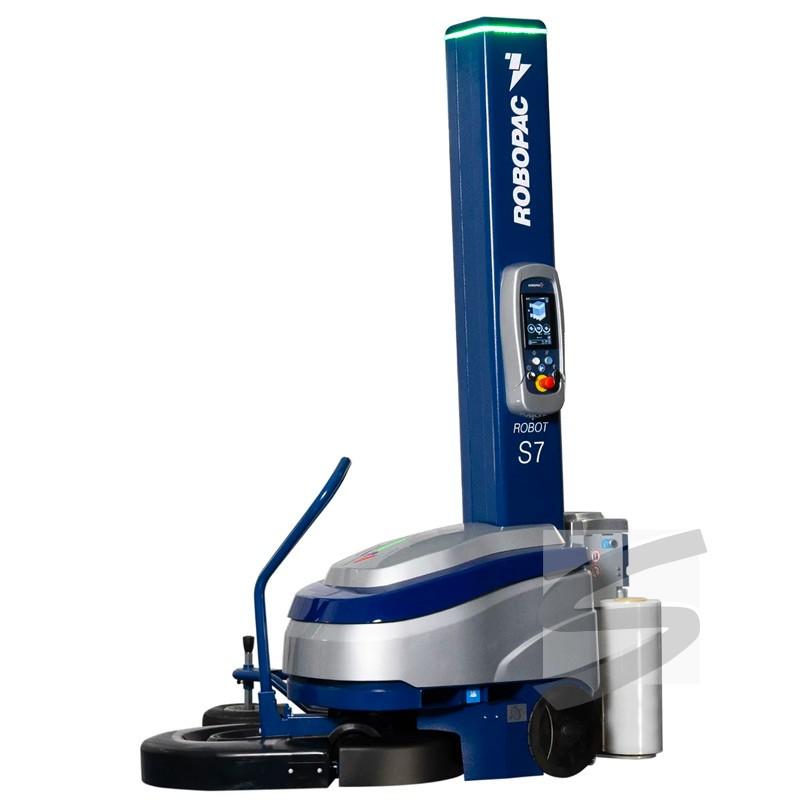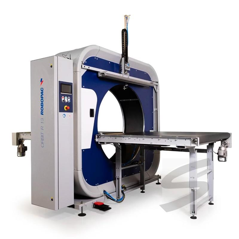 Banderoleuse semi-automatique à bras tournant pour la stabilisation des charges instables et lourdes